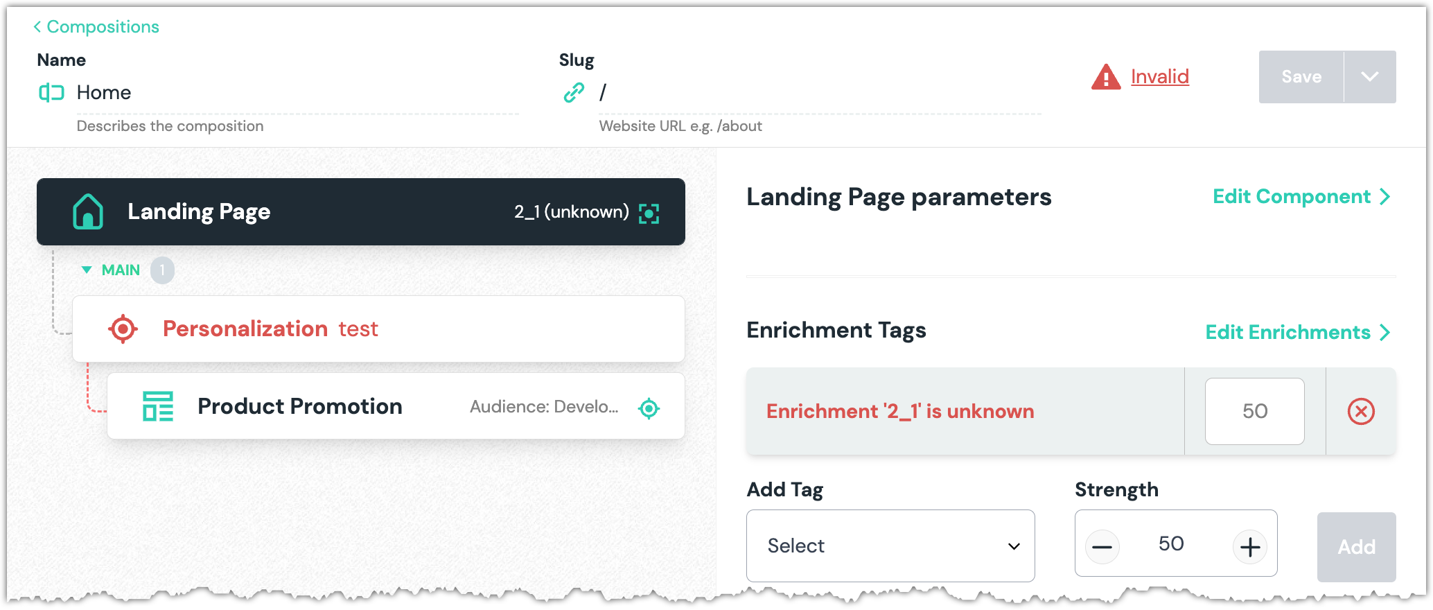 You can assign enrichments to compositions, and you can configure audiences and intents using the enrichment.