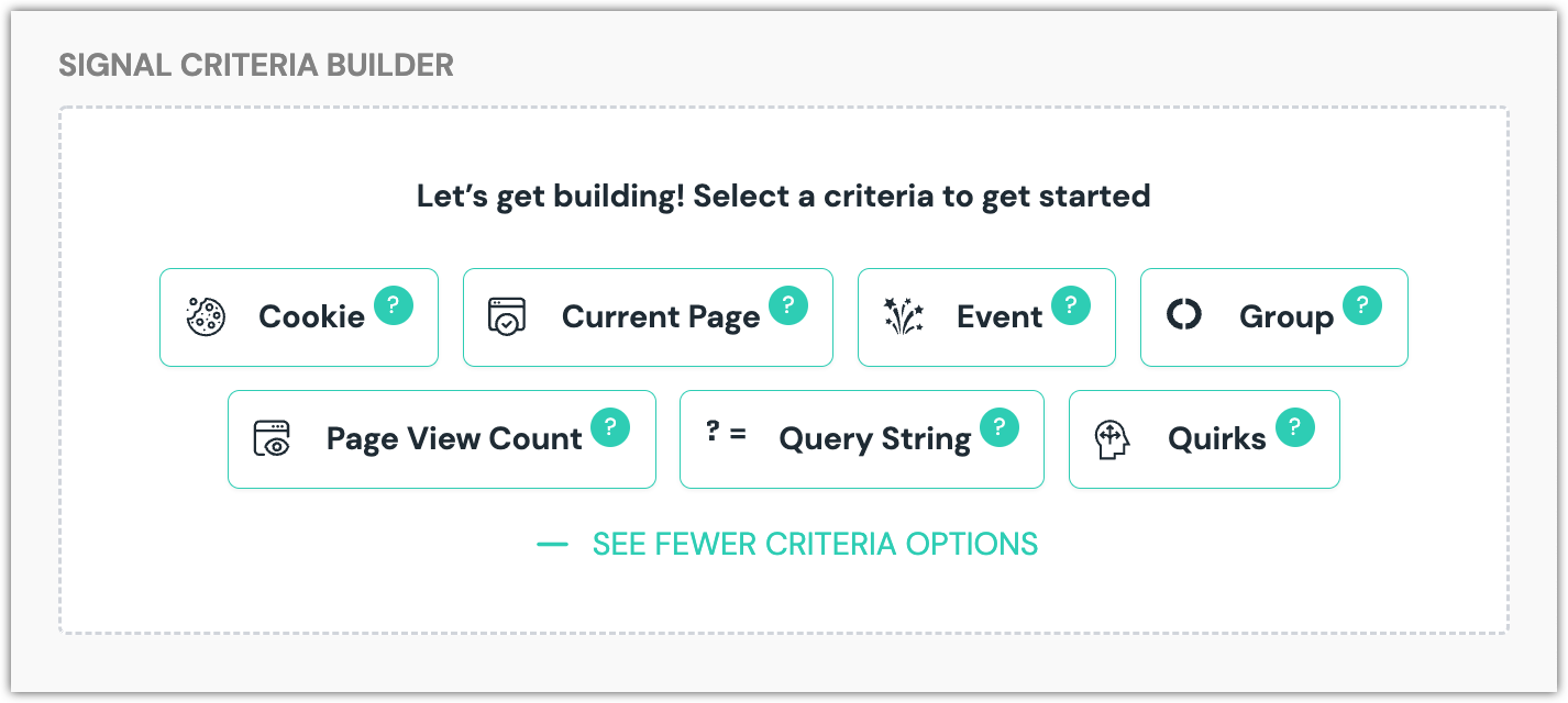 For details about the configuration options for each signal, see the criteria types reference.